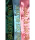Banda confeccionada en cinta de raso de 84 mm con escudo bordado en la parte superior, letras bordadas en hilo de oro, terminada con un lazo a la cintura y rematada con dos borlas doradas.