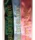 Bordamos la banda con el texto que quieras, con la cinta en el color que quieras. Da un toque original a las bandas para tus fiestas