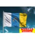 Bandera fabricada para exterior en tejido de poliéster de 110 grs. M2.  Doble costura en los extremos con hilos resistentes al exterior. Con cinta de refuerzo y anillas en el lado del mástil. Traspaso total del color