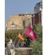 Bandera confeccionada en tejido de poliéster 110 gramos. Bandera ideal para exterior gracias a su refuerzo doble, tiene dos anillas para la sujección en el mástil.