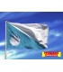 Bandera confeccionada en tejido de poliéster 110 gramos. Bandera especial para exterior gracias a su doble costura por toda la bandera, bandera para mástil gracias a sus dos anillas para la sujección. Gran resistencia en el exterior.