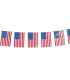 Tira de banderas de plástico para decorar calles y locales con la bandera de EEUU, ideal para fiestas americanas como por ejemplo celebrar el 4 de julio. Banderas de plástico sellada a la cuerda para una mayor resistencia a la condiciones climatológicas.