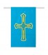 Banderas de plástico para decorar calles, plazas para fiestas o eventos festivos. La bandera va cosida a la cuerda de plástico para una mejor sujeción y resistencia a las condiciones ambientales