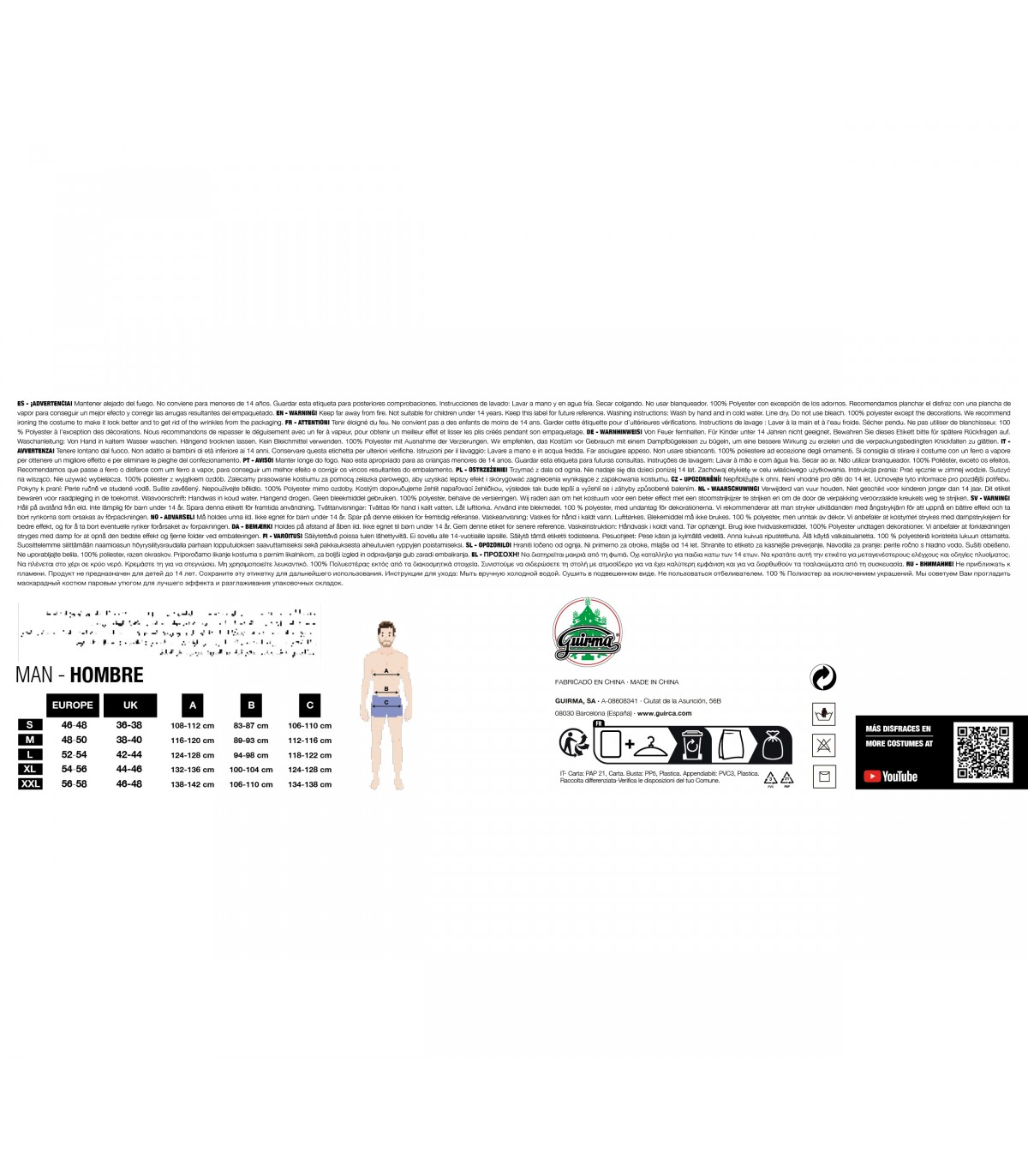 Para lograr el máximo realismo, te sugerimos completar el traje con los siguientes accesorios que se venden por separado: